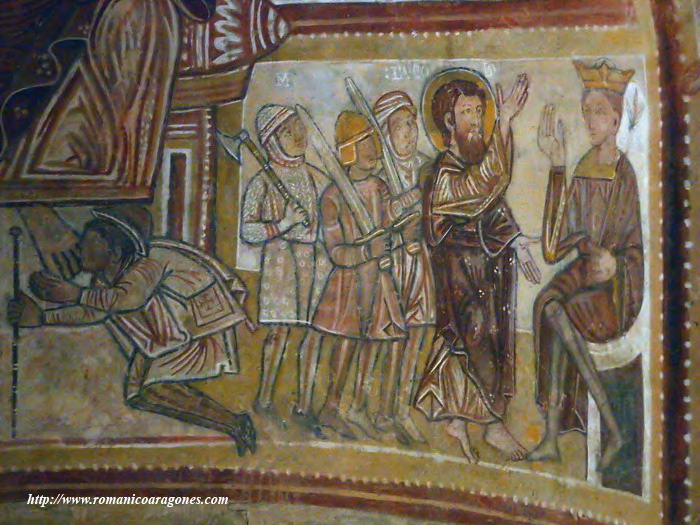 El registro inferior derecho (Imagen 6) narra la escena del prendimiento y juicio de Santiago el Mayor por Herodes Agripa. Sobre la cabeza del apóstol hay una inscripción dividida que lo señala como IACO-BVS