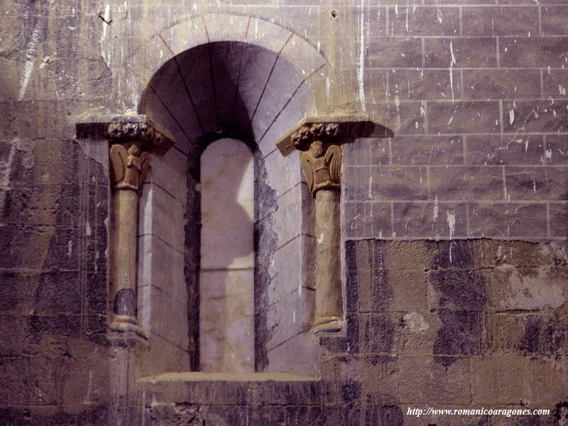 La verdad es que desconcierta. ¿De dónde se sacan el modelo? para ese vano adintelado de la cripta con columnillas o para los "engendros" de los absidales y transepto a los que parecen haber "empujado columnillas" de modo forzado?