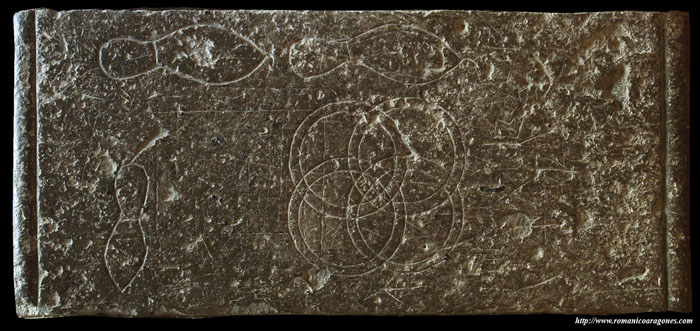 Sobre estas líneas muestro la piedra de mesura de Veruela, situada en el antepecho de la sala capitular del monasterio de Veruela en la provincia de Zaragoza. Sobre esa superficie se tallaron diferentes medidas, útiles para la edificación del monasterio, como el pie corto, el pie mediano y el pie grande, ángulos, círculos secantes componiendo diferentes figuras, etc. Maestros diferentes con medidas diferentes, pero que si guardaron las proporciones adecuadas en su obra consiguieron unos magníficos resultados.